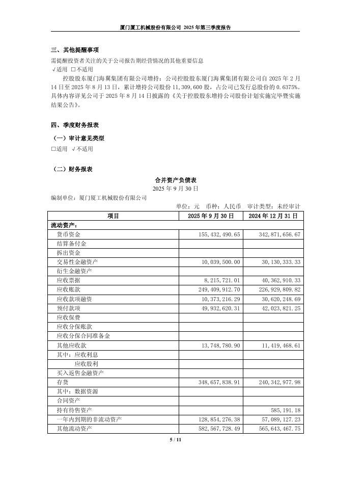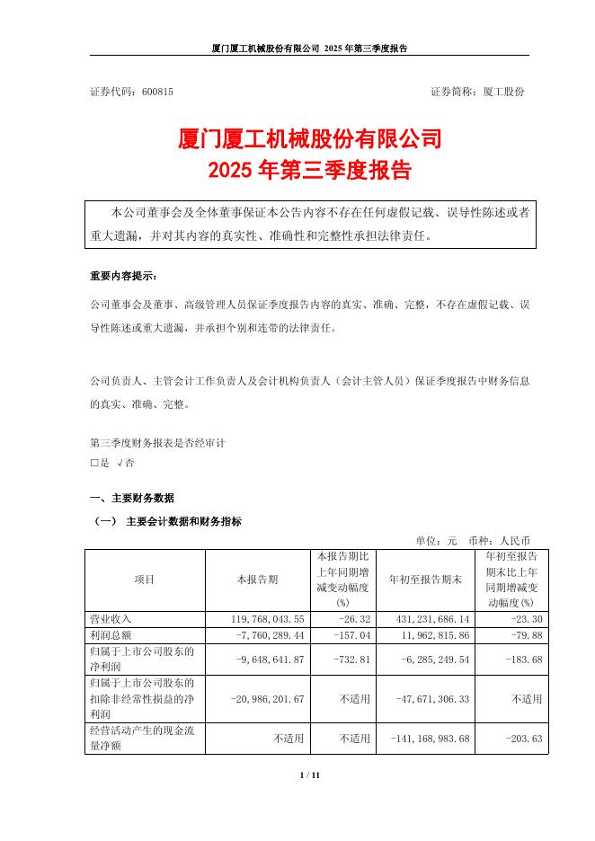 600815-厦工股份:厦工股份2025年第三季度报告.pdf