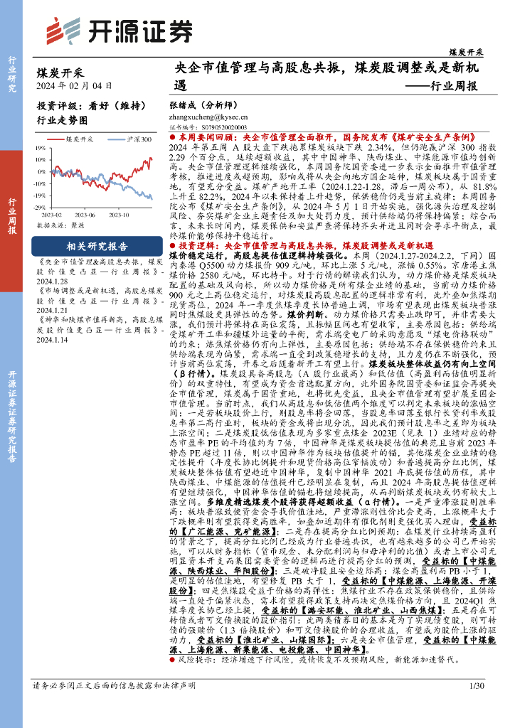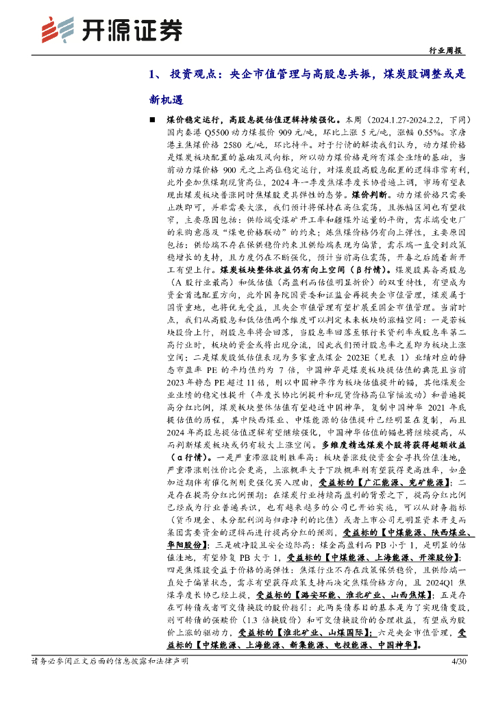 开源证券:煤炭开采行业周报:央企市值管理与高股息共振,煤炭股调整或是新机遇.pdf