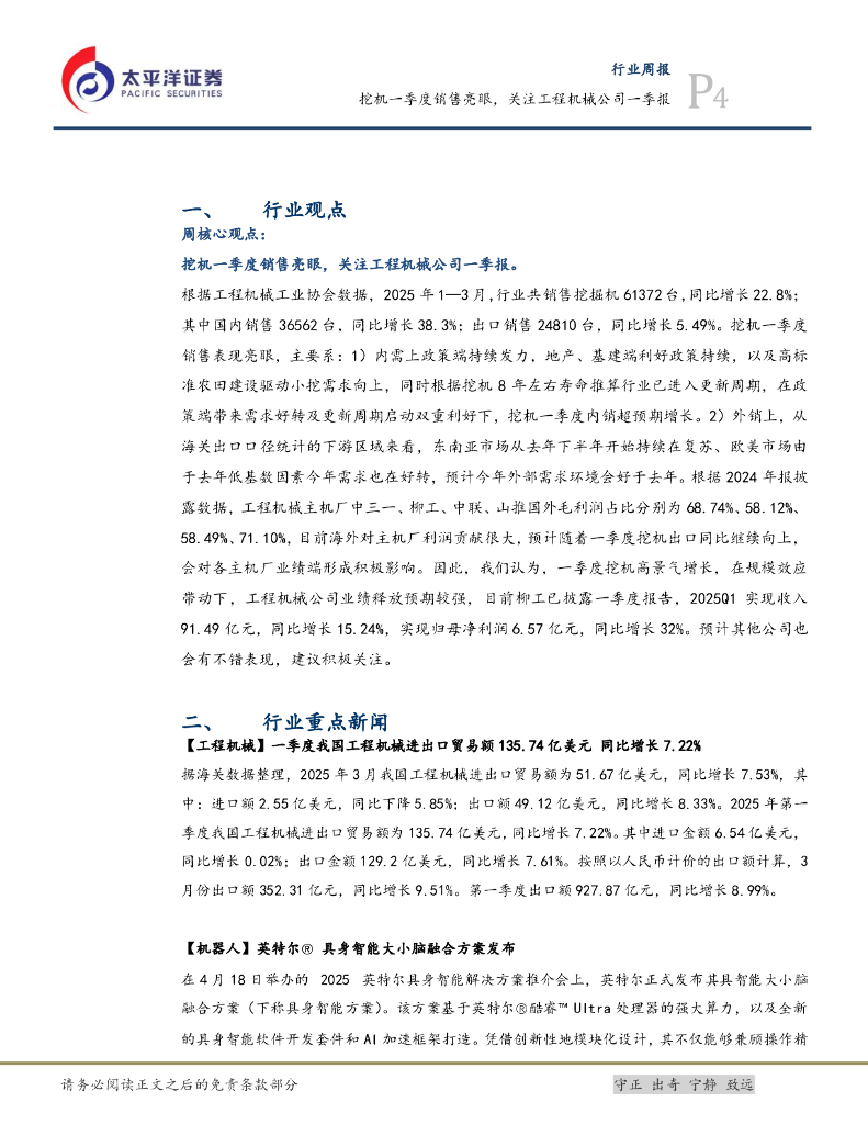 太平洋证券:机械行业周报:挖机一季度销售亮眼,关注工程机械公司一季报.pdf