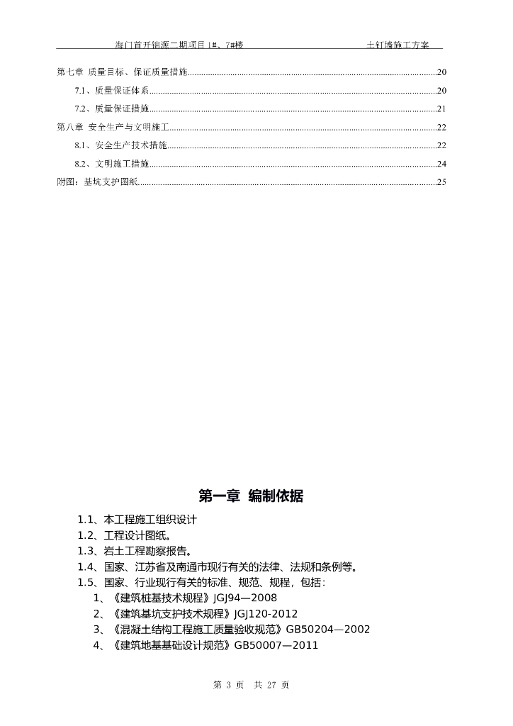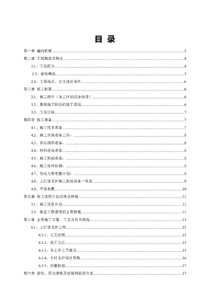 住宅楼土钉墙施工方案(34页,清楚明了).doc