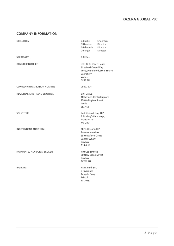 Kazera Global plc(KZG)2021财年年度报告(英文版).pdf