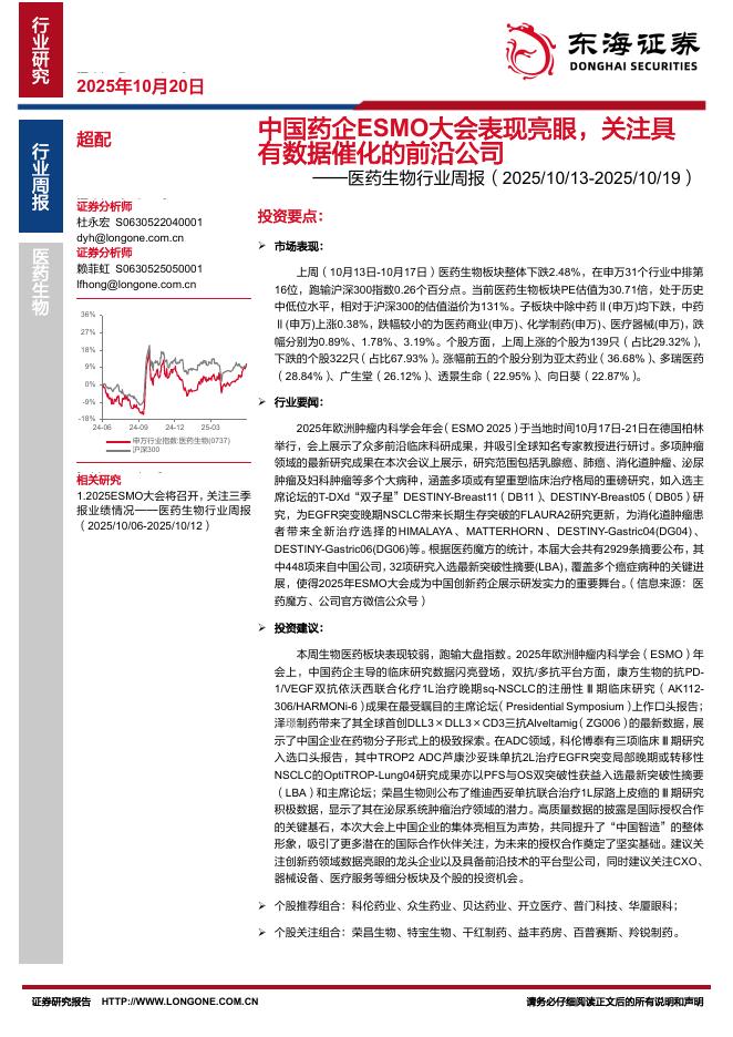 东海证券:医药生物行业周报:中国药企ESMO大会表现亮眼,关注具有数据催化的前沿公司.pdf
