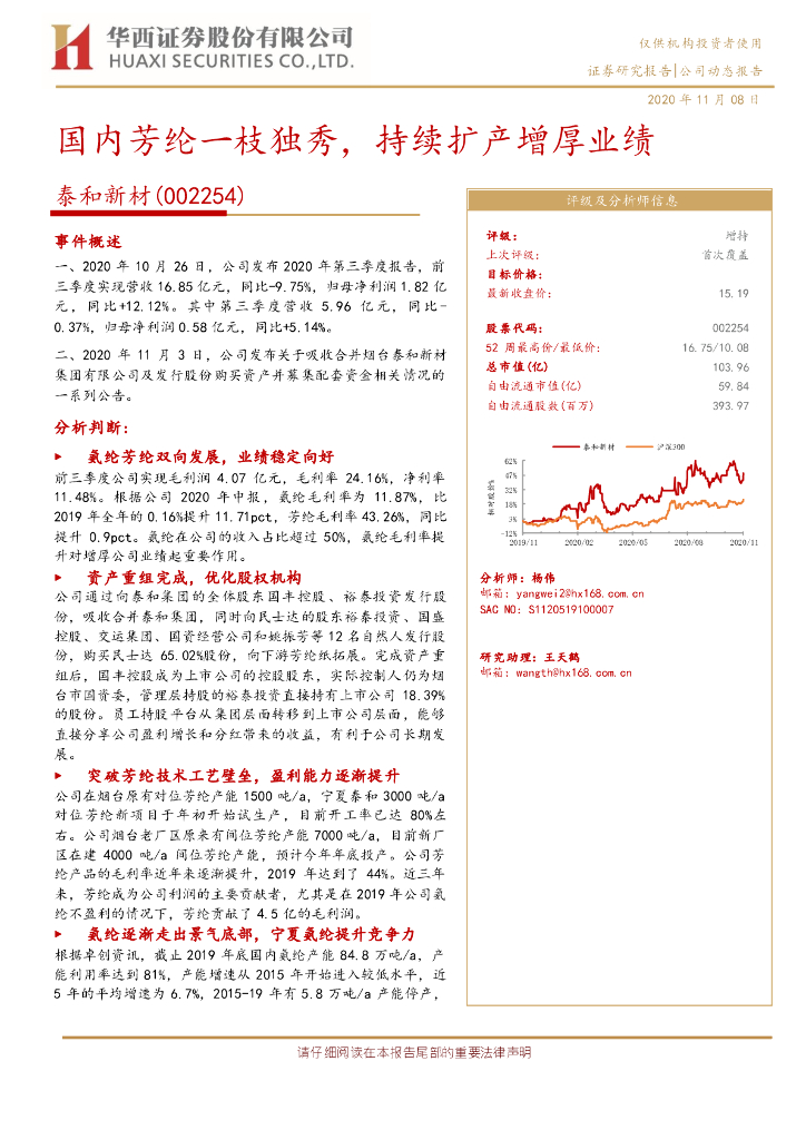 华西证券:泰和新材(002254)-国内芳纶一枝独秀,持续扩产增厚业绩.pdf