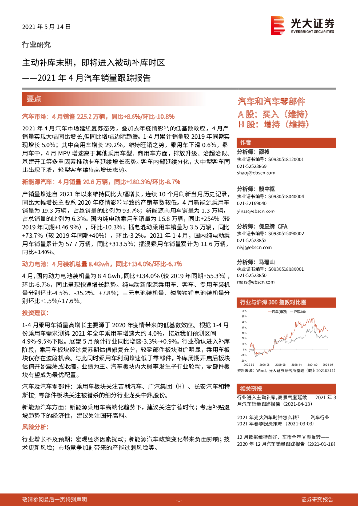 光大证券:2021年4月汽车销量跟踪报告:主动补库末期,即将进入被动补库时区.pdf