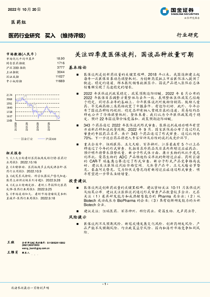 国金证券:医药行业研究:关注四季度医保谈判,国谈品种放量可期.pdf