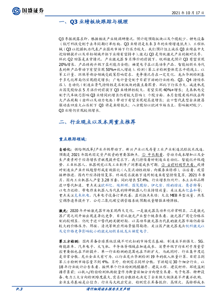 国盛证券:机械设备行业周报:板块Q3业绩前瞻,把握高增品种.pdf