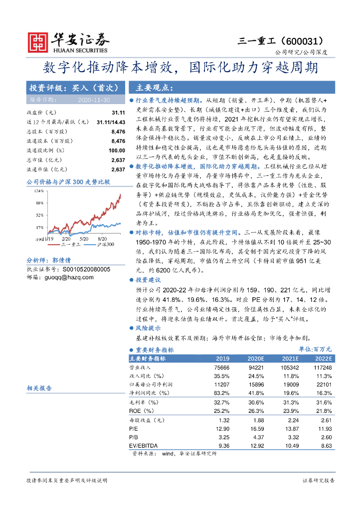 华安证券:三一重工(600031)-数字化推动降本增效,国际化助力穿越周期.pdf