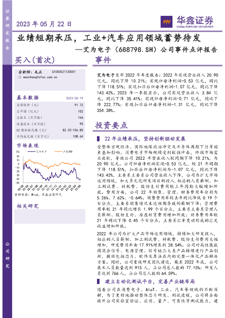 华鑫证券:艾为电子(688798)-公司事件点评报告:业绩短期承压,工业+汽车应用领域蓄势待发.pdf