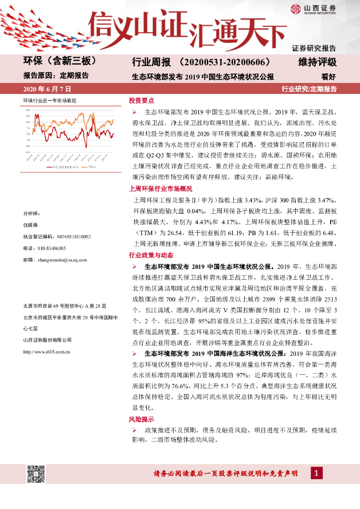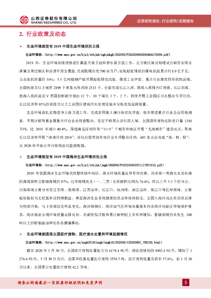 山西证券:环保(含新三板)行业周报:生态环境部发布2019中国生态环境状况公报.pdf