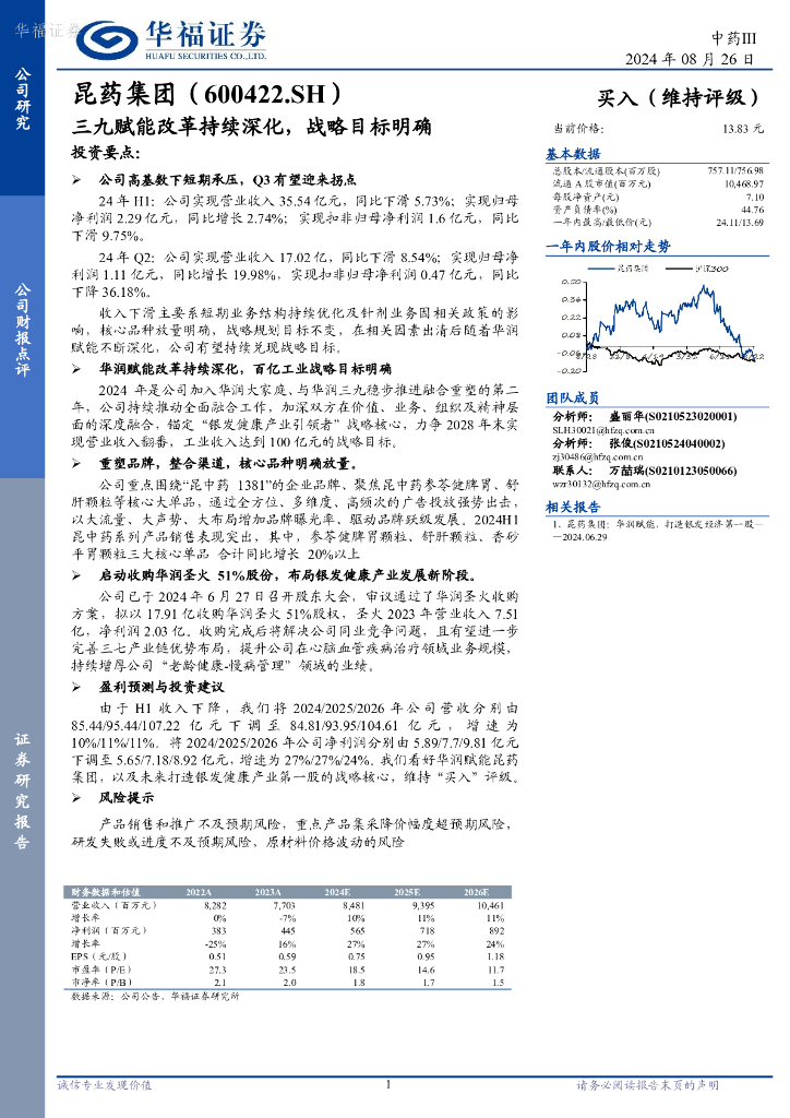 华福证券:昆药集团(600422)-三九赋能改革持续深化,战略目标明确.pdf