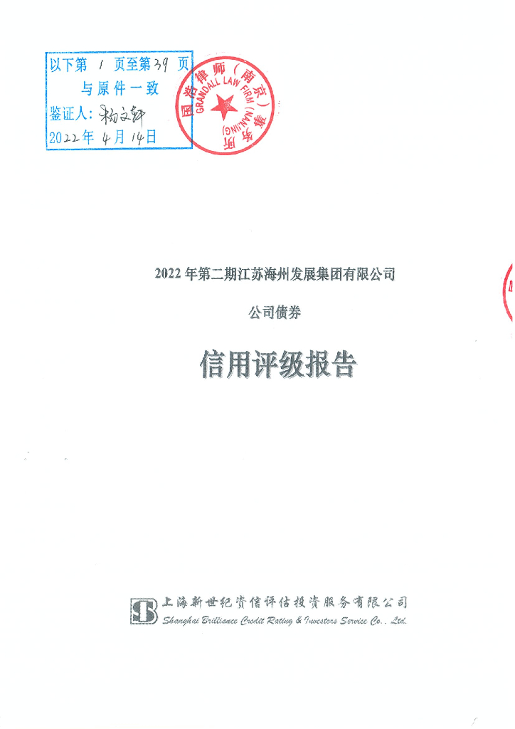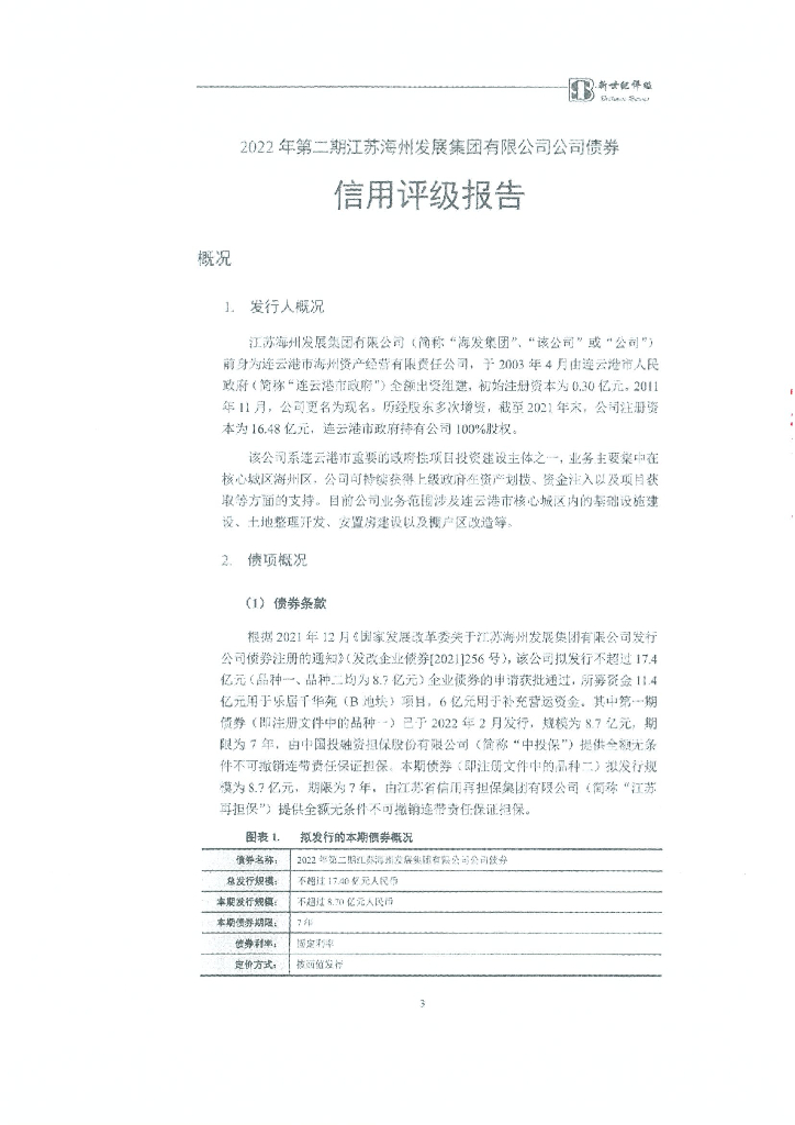 新世纪:2022年第二期江苏海州发展集团有限公司公司债券信用评级报告.pdf