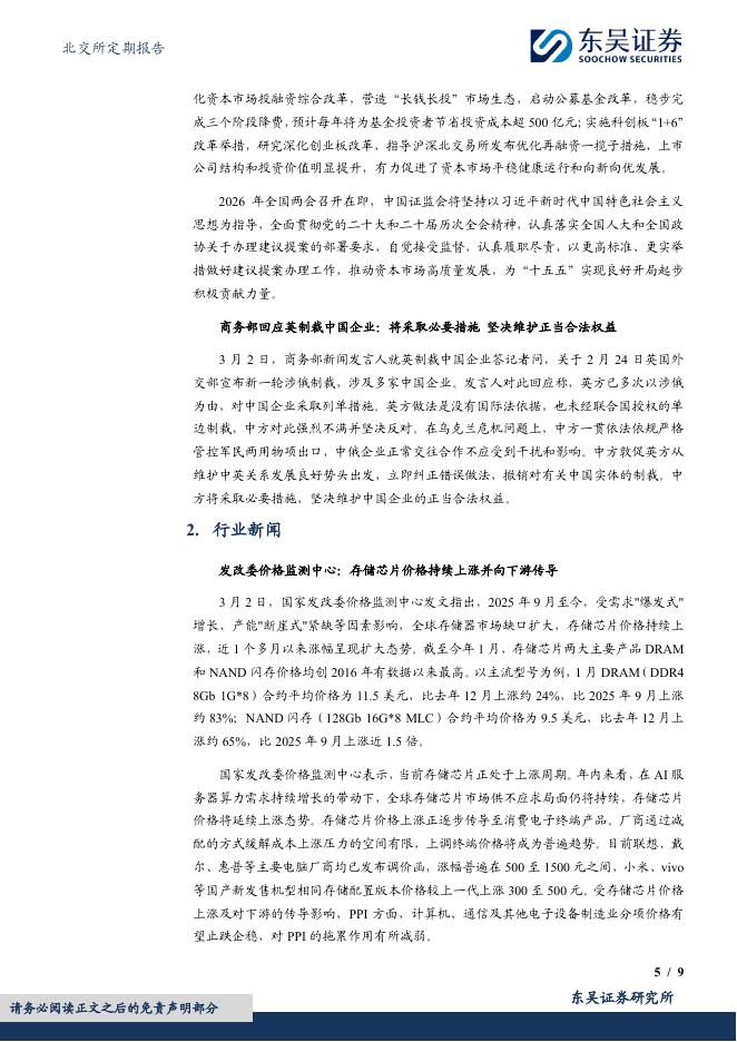 东吴证券:北交所定期报告:存储芯片价格持续上涨并向下游传导,北证50下跌3.99%-260303.pdf