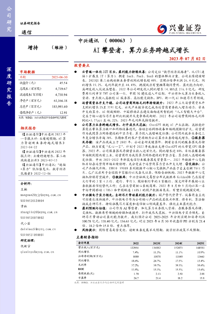 兴业证券:中兴通讯(000063)AI攀登者,算力业务跨越式增长.pdf