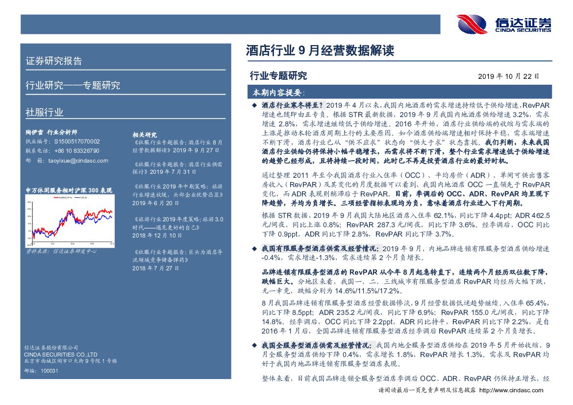 信达证券:社服行业专题研究报告:酒店行业9月经营数据解读.pdf