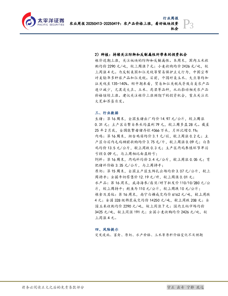 太平洋证券:农业行业周报:农产品价格上涨,看好板块投资机会.pdf