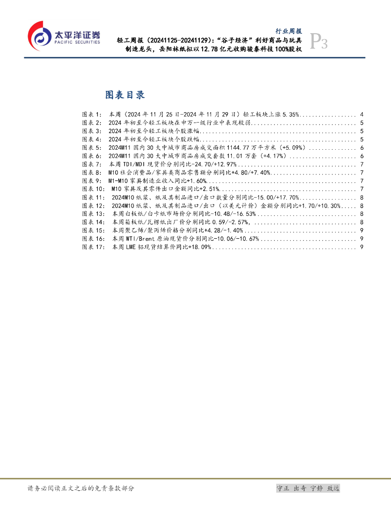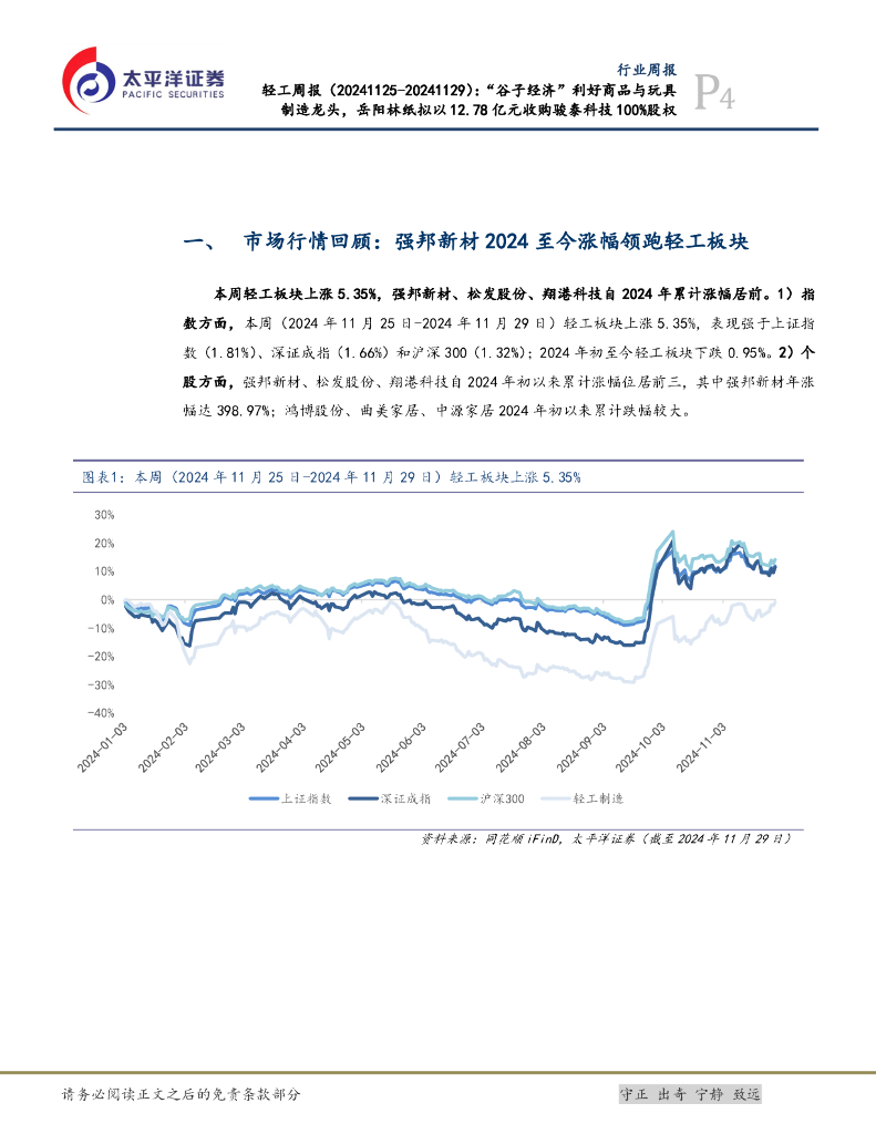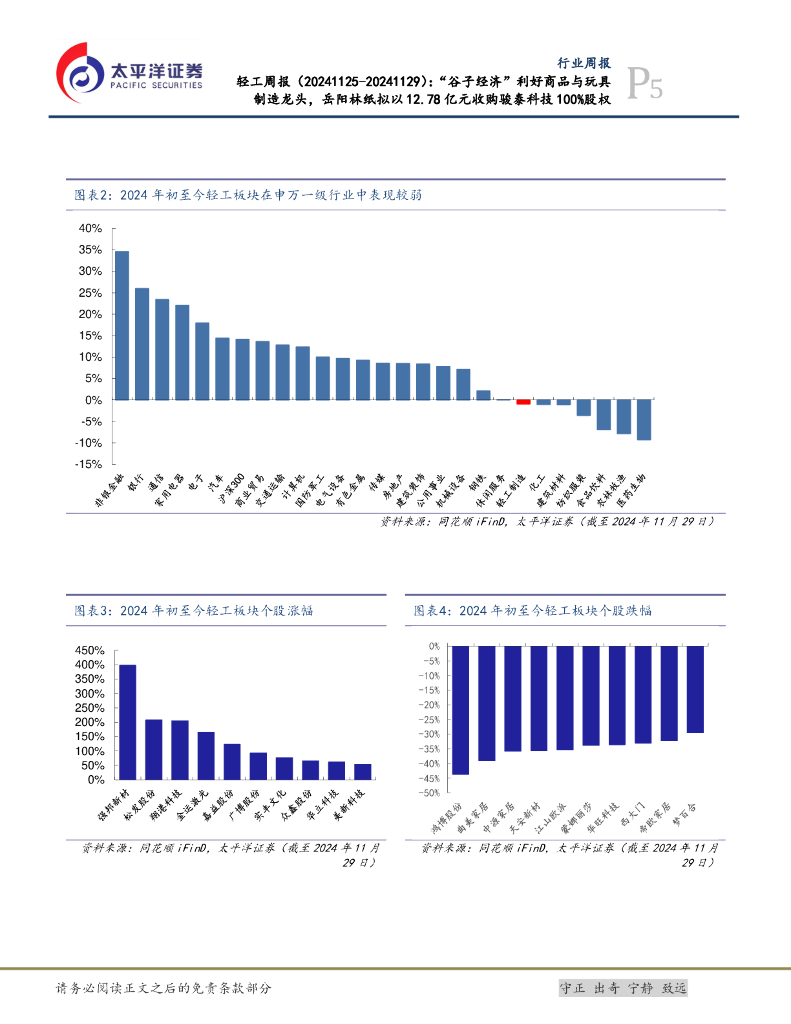 太平洋证券:轻工行业周报:“谷子经济”利好商品与玩具制造龙头,岳阳林纸拟以12.78亿元收购骏泰科技100%股权.pdf