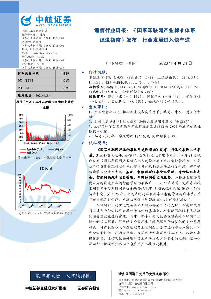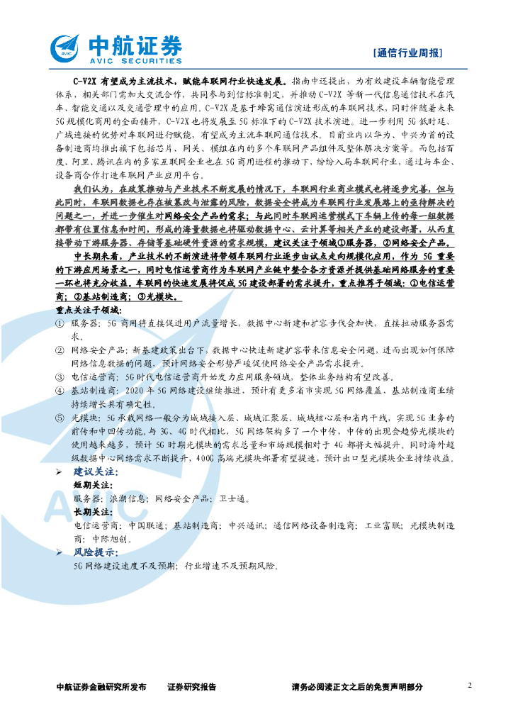 中航证券:通信行业周报:《国家车联网产业标准体系建设指南》发布,行业发展进入快车道.pdf