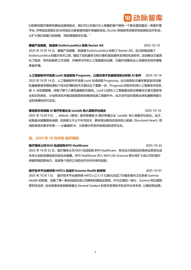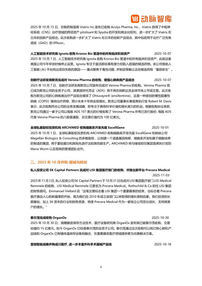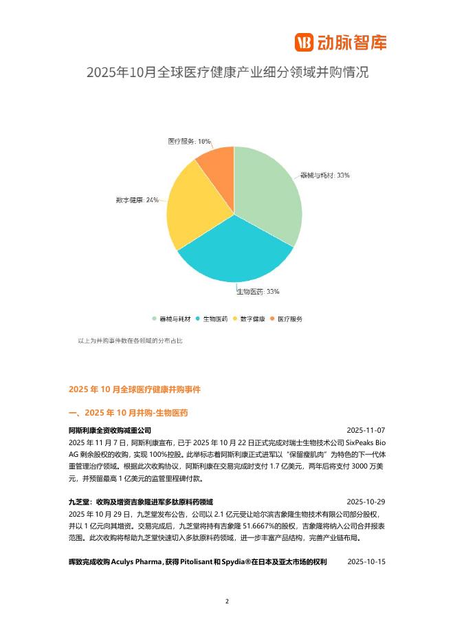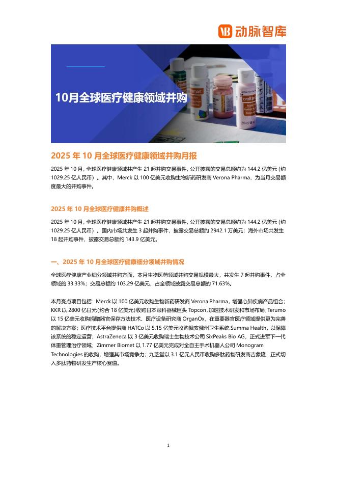 动脉橙:2025年10月全球医疗健康领域并购月报.pdf