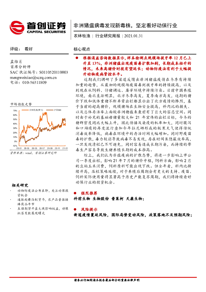 首创证券:农林牧渔行业研究周报:非洲猪瘟病毒发现新毒株,坚定看好动保行业.pdf