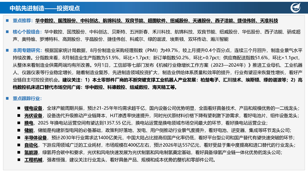 中航证券:先进制造行业周报:制造业复苏持续,关注工业母机与工业机器人的自主可控机会.pdf