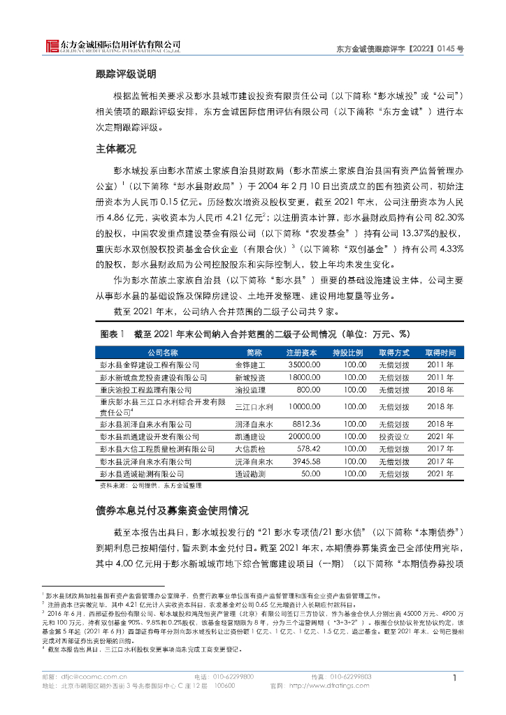东方金诚:彭水县城市建设投资有限责任公司主体及“21彭水专项债21彭水债”2022年度跟踪评级报告.pdf