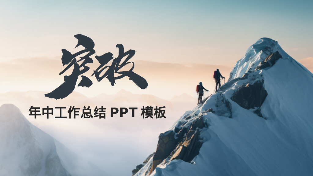 高山上的攀登者背景励志风年中工作总结PPT模板.ppt