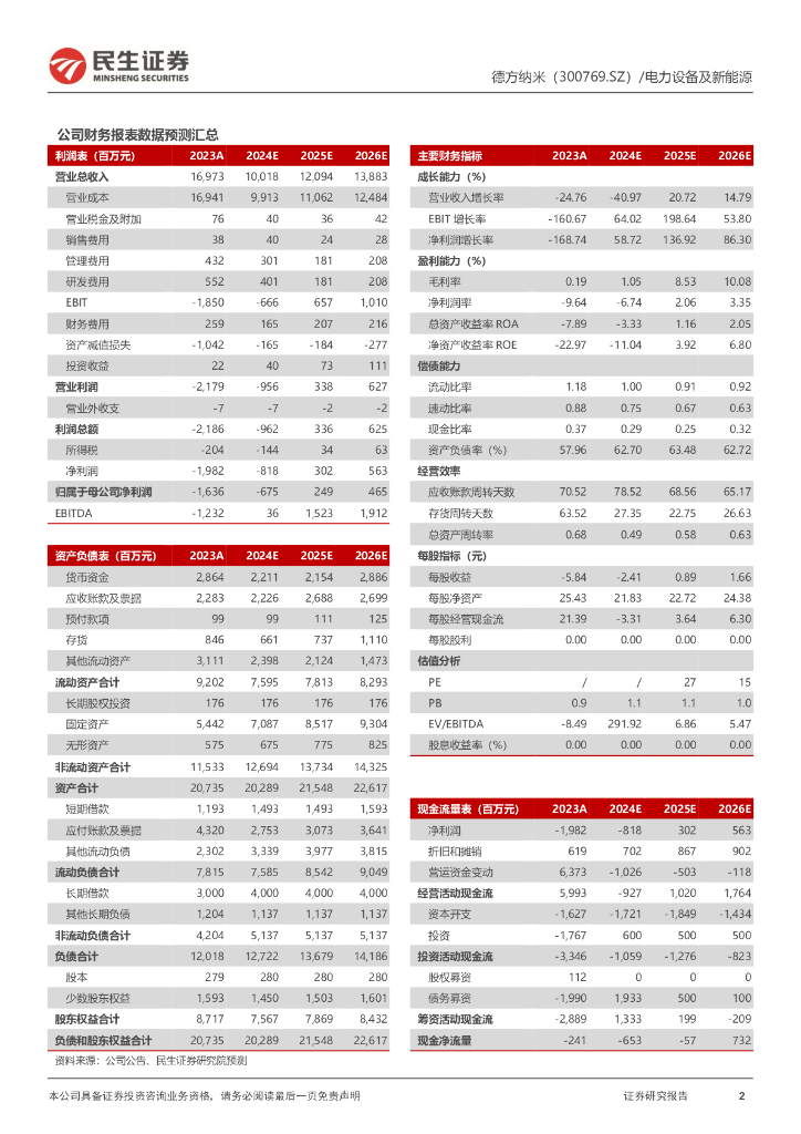 民生证券:德方纳米(300769)-2024年半年报点评:短期业绩承压,布局前沿新品静待花开.pdf