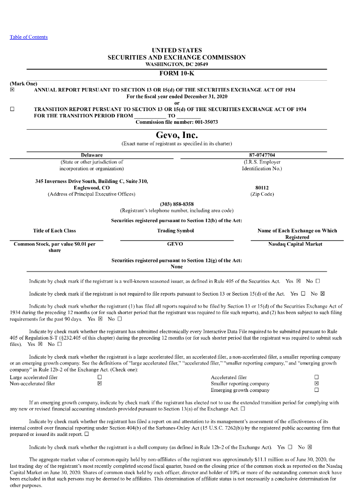 Gevo, Inc.(GEVO)2020财年年度报告(英文版).pdf