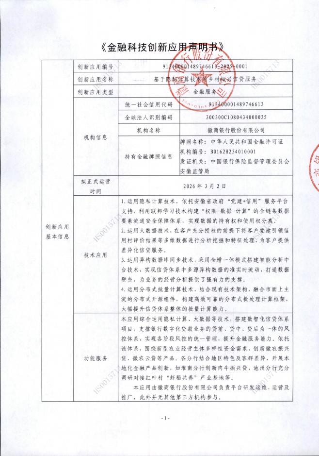 金融科技创新应用声明书:基于隐私计算技术的乡村振兴信贷服务.pdf
