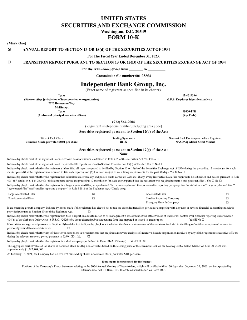 Independent Bank Group Inc(IBTX)2023财年年度报告(英文版).pdf