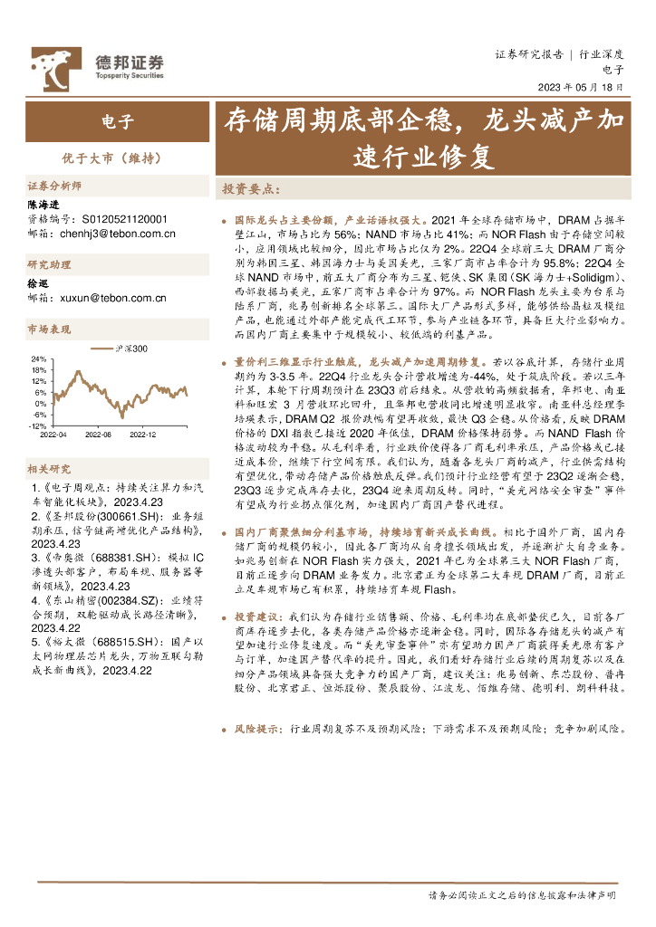 德邦证券:电子行业深度:存储周期底部企稳,龙头减产加速行业修复.pdf