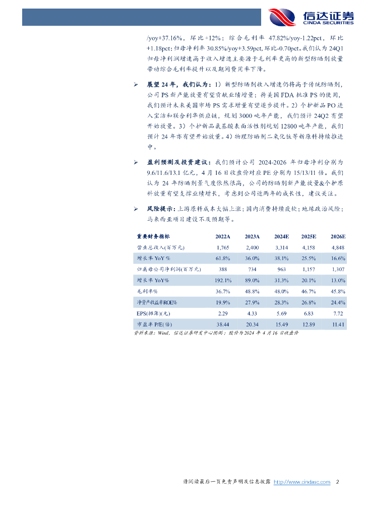 信达证券:科思股份(300856)-23年年报&24Q1业绩点评:23年业绩高增,24年防晒剂新产能&个护原料有望贡献增长.pdf