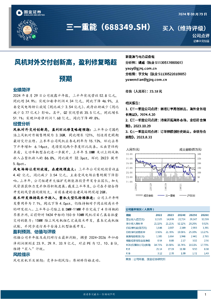 国金证券:三一重能(688349)-风机对外交付创新高,盈利修复略超预期.pdf