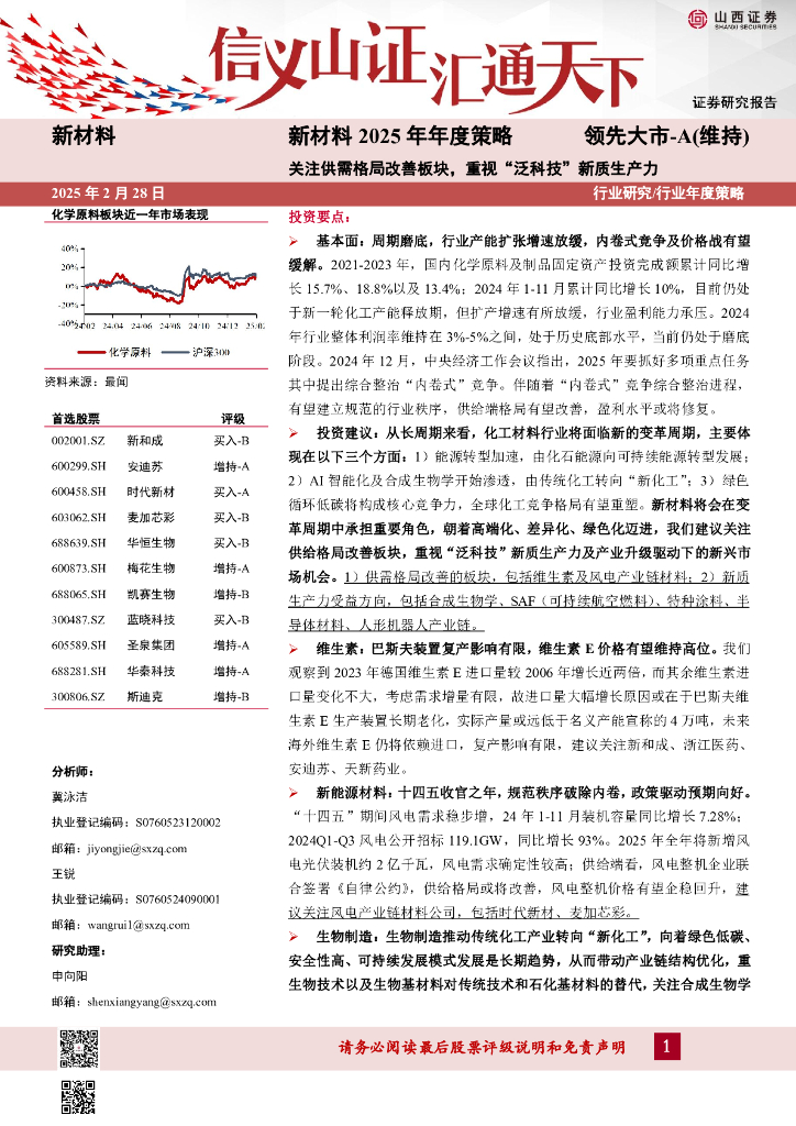 山西证券:新材料2025年年度策略:关注供需格局改善板块,重视“泛科技”新质生产力.pdf