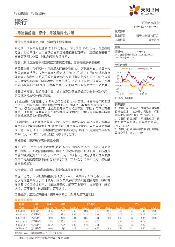 天风证券:银行5月社融前瞻:预计5月社融同比少增.pdf