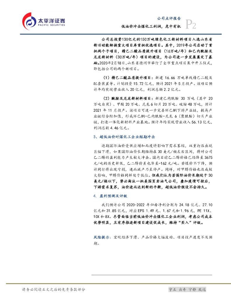 太平洋证券:华鲁恒升(600426)-低油价冲击煤化工利润,危中有机.pdf