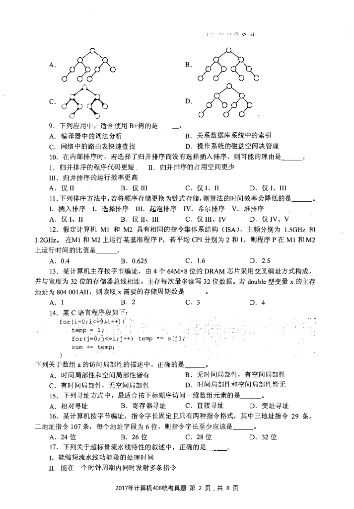 2017年全国硕士研究生入学统一考试计算机科学与技术学科联考计算机学科专业408基础综合试题+解析.pdf