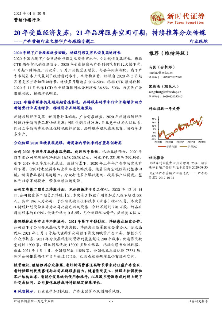 新时代证券:广告营销行业之楼宇广告跟踪专题二:20年受益经济复苏,21年品牌服务空间可期,持续推荐分众传媒.pdf