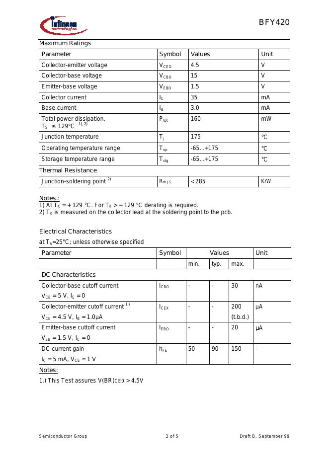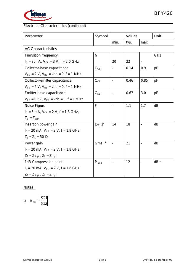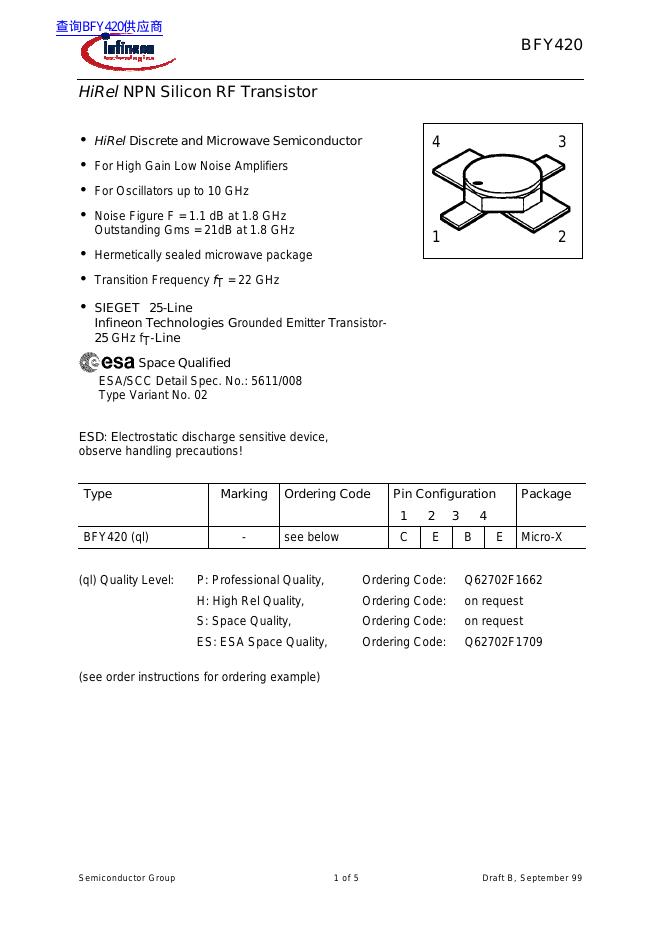 infineon BFY420 数据手册.pdf