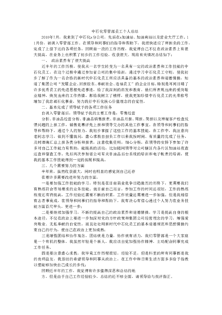 中石化零管部个人工作总结.doc