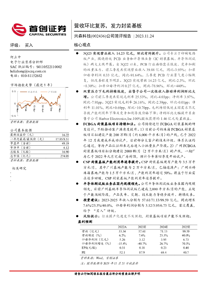 首创证券:兴森科技(002436)-公司简评报告:营收环比复苏,发力封装基板.pdf