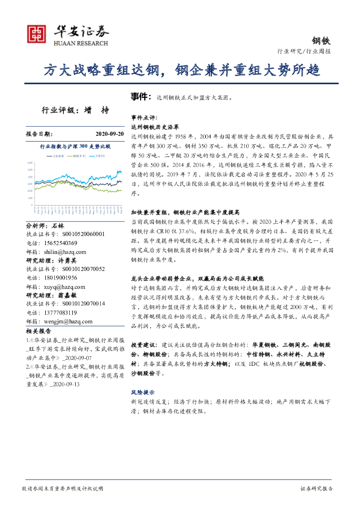 华安证券:钢铁行业周报:方大战略重组达钢,钢企兼并重组大势所趋.pdf