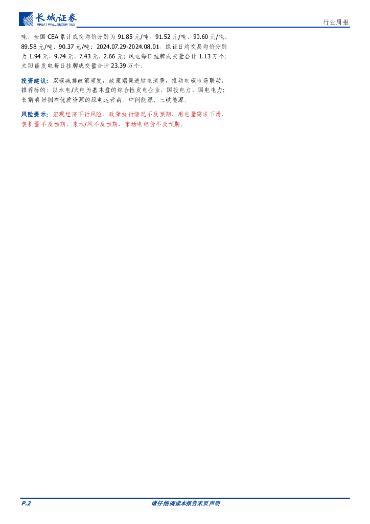 长城证券:电力及公用事业行业周报(7.29-8.2):双碳减排政策频发,板块市场表现回落.pdf