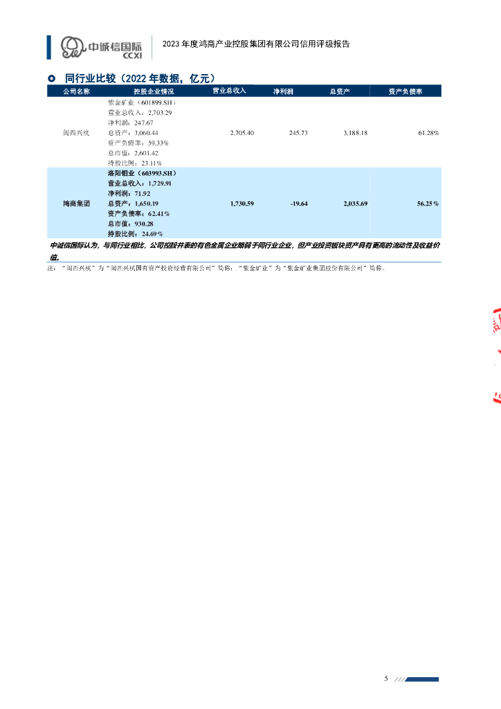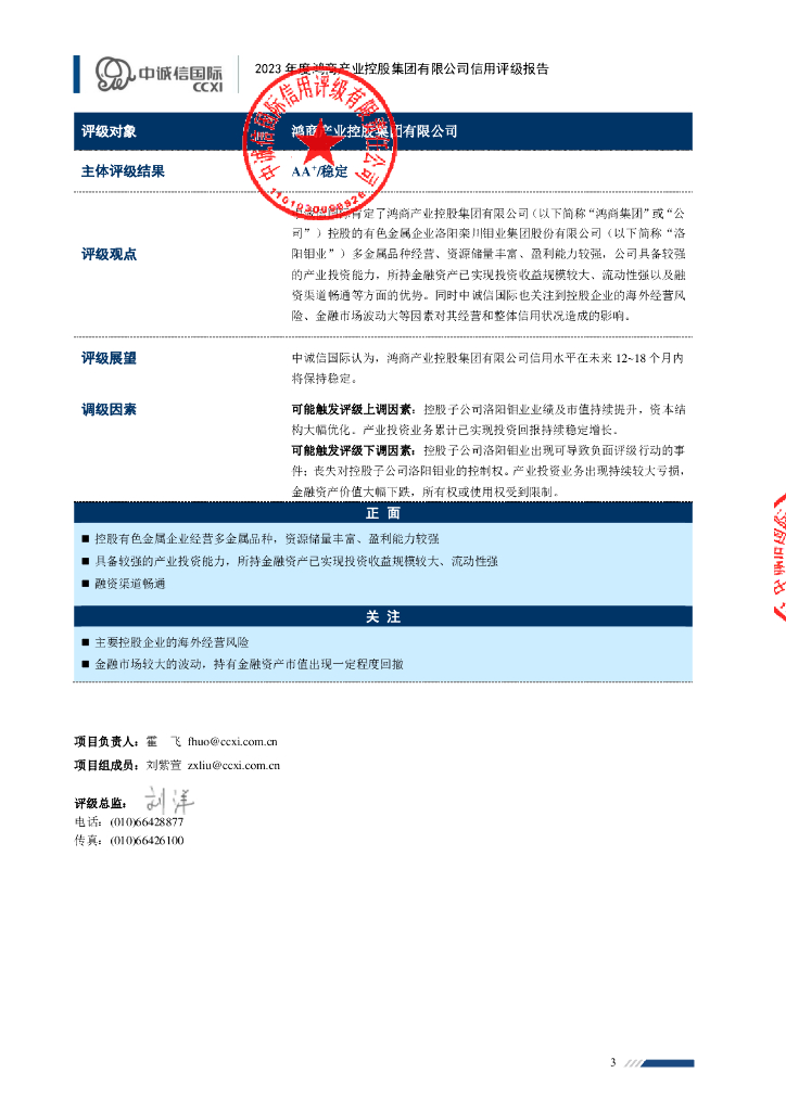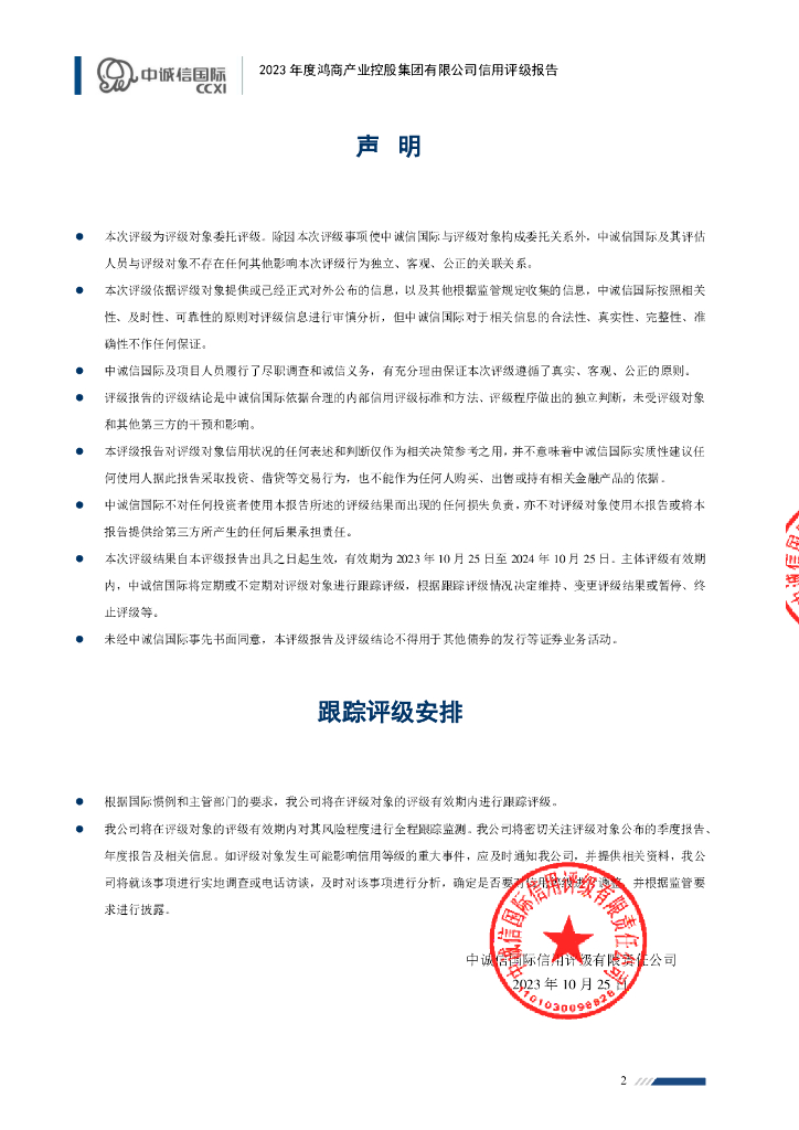 中诚信:2023年度鸿商产业控股集团有限公司信用评级报告.pdf