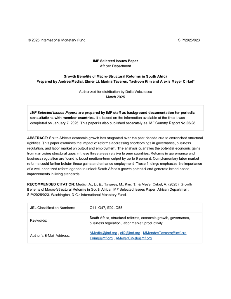 国际货币基金组织:南非宏观结构改革的增长效益:南非(英文版).pdf