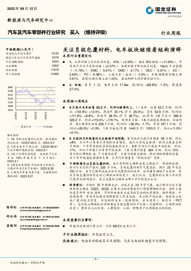 国金证券:汽车及汽车零部件行业研究周报:关注负极包覆材料,电车板块继续看结构演绎.pdf
