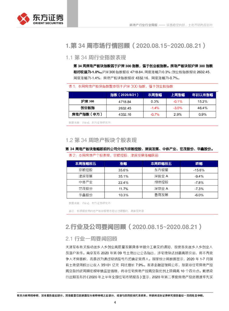 东方证券:房地产行业2020年第34周地产周报:销售稳定向好,土地市场热度回升.pdf
