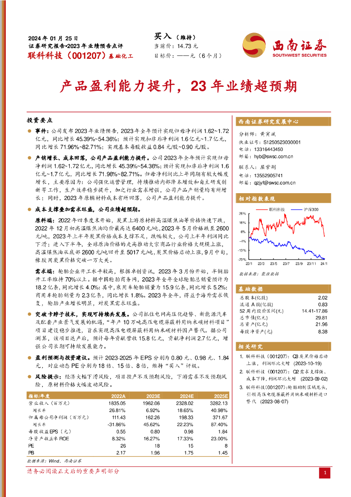 西南证券:联科科技(001207)-产品盈利能力提升,23年业绩超预期.pdf