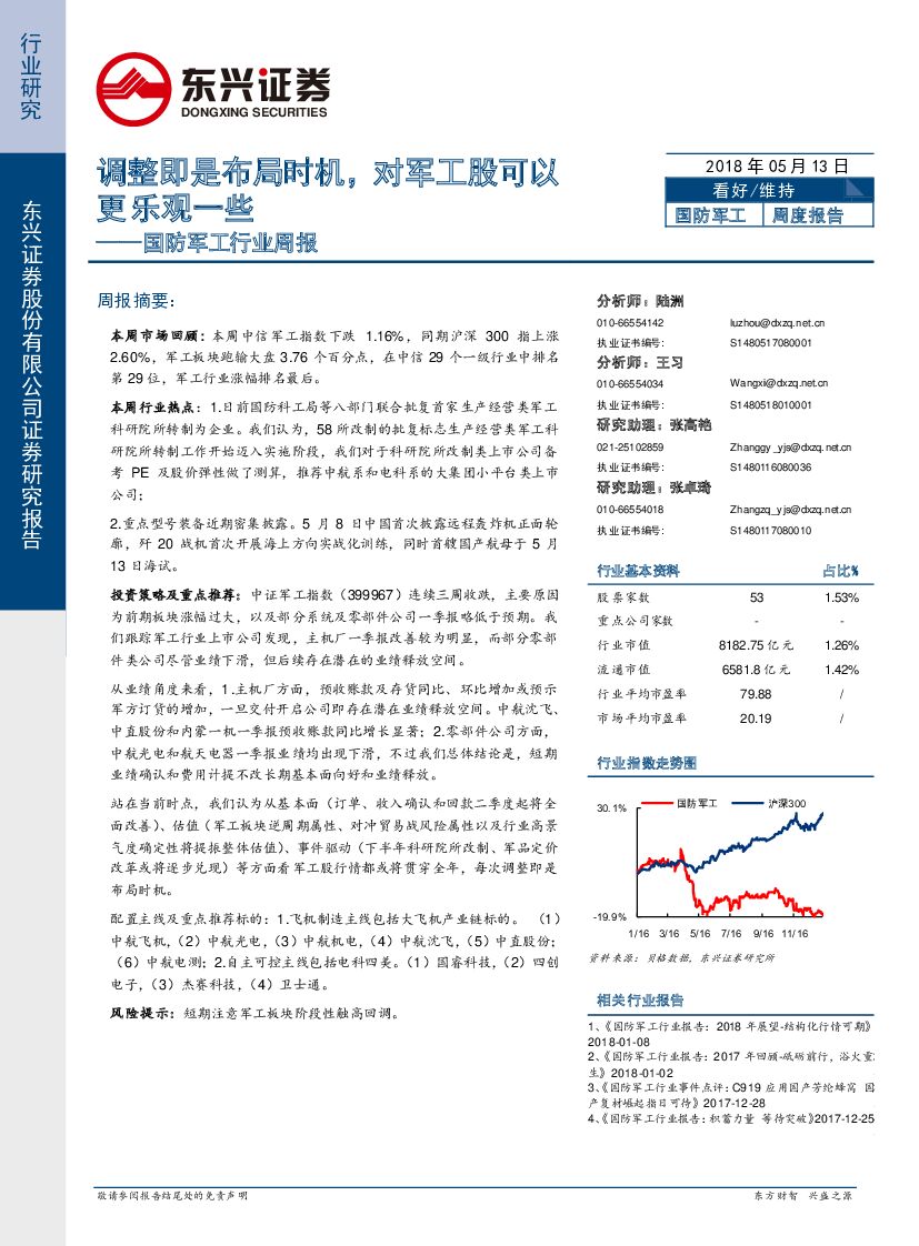 东兴证券:国防军工行业周报:调整即是布局时机,对军工股可以更乐观一些.pdf