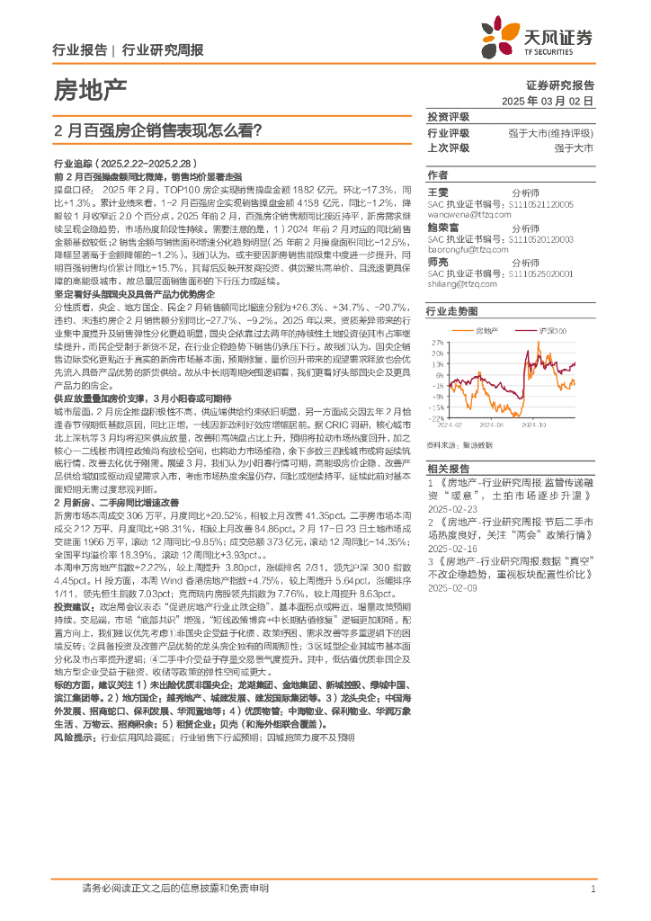 天风证券:房地产行业研究周报:2月百强房企销售表现怎么看?.pdf